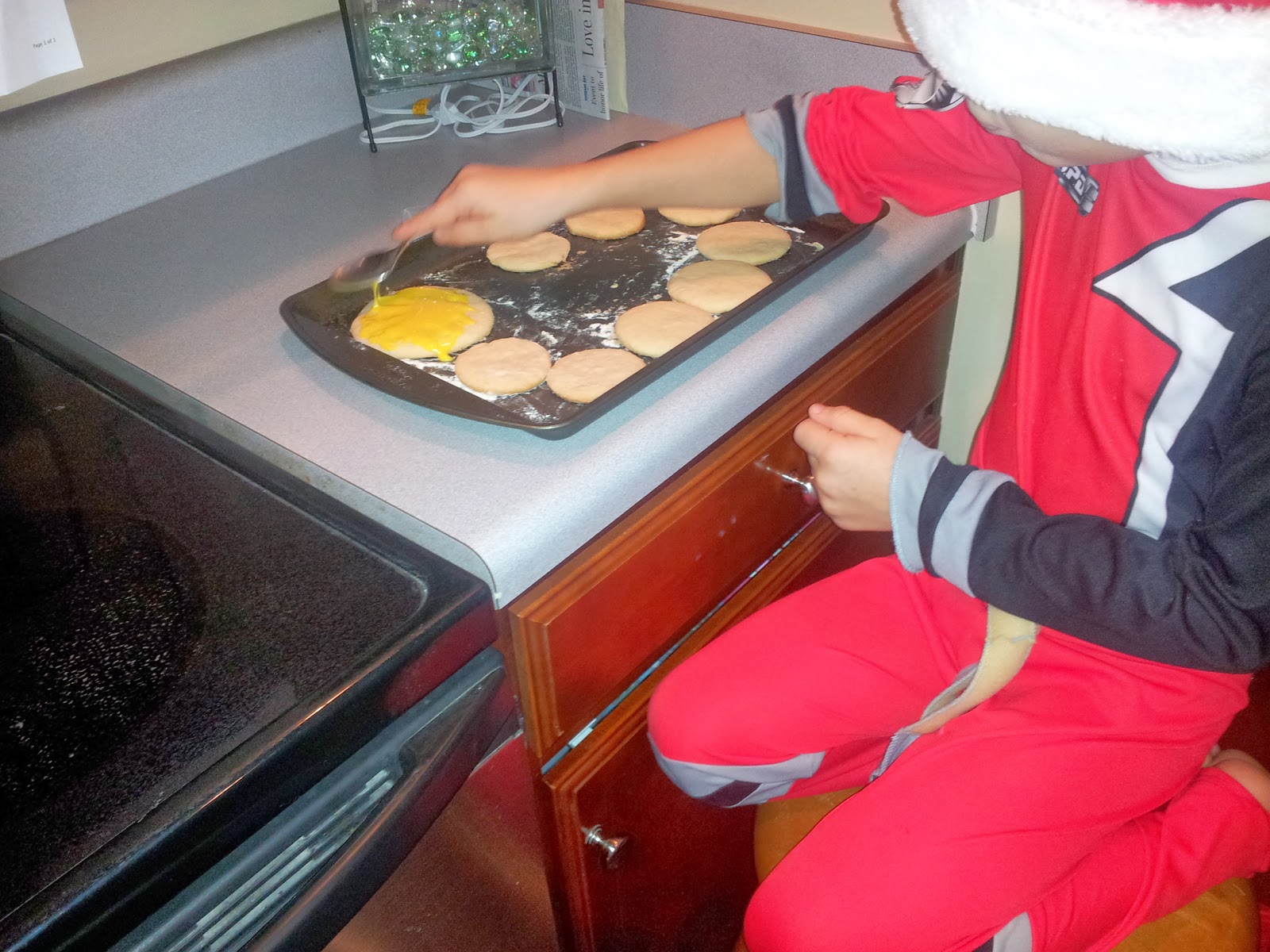 It is Shay's big 0-7 birthday, and so we had cake pops to make, salt dough to make and create with, and all the regular Friday school work to do. Oh, and breakfast. Yeah, we did it all, and managed to get onto the trampoline for almost two hours! Oiy vey! It was a busy afternoon and then it was play rehearsal time, then it was rush home to shower and do some painting of the dried Chanukah salt dough ornaments and then on to the annual viewing of a 3-D movie, "Santa and the Snowman." Weekends are extra special for the Ahrens Family, however, Friday is the most fun home school day we have. Take a look-